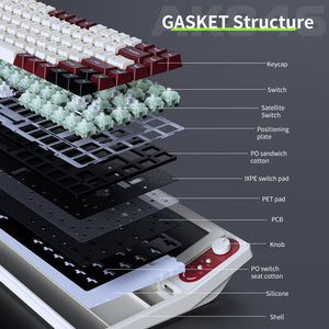 The AJAZZ AKP846 redefines keyboard customization and comfort. With full-key hotswappability, you can easily replace switches without soldering, tailored to your typing preferences. The gasket structure not only enhances the typing feel but also significantly reduces vibration, ensuring a smooth and responsive typing experience.