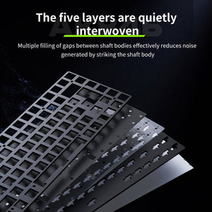 Dive into a quieter typing realm with five layers of sound dampening material. This multi-layer structure fills the internal space, effectively minimizing cavity sound and enhancing the purity of each keystroke. It’s designed for those who appreciate a quieter and more refined auditory experience.