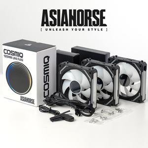 Asiahorse COSMIQ RGB 120mm Daisy Chain PWM Fan — 3Pack with Controller and CPU Cooler Screws