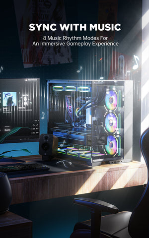 - Sync with Music. The included RGB controller features a high-sensitivity wireless receiver, just open the music mode through fan hub, the dynamic lighting will automatically change with surrounding sounds. Groove to the beat, dance with the lights.