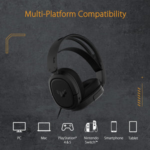 TUF Gaming H1 Wireless headset features a 2.4 GHz connection, 7.1 surround sound with deep bass, a Discord and TeamSpeak-certified microphone, a lightweight and comfortable design, plus compatibility with PCs, PlayStation® 5 and Nintendo Switch™.