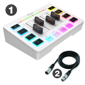 شحن فوري FIFINE Gaming Mixer 4-Channels/XLR RGB With Pahntom Power (White/Black) + XLR Cable