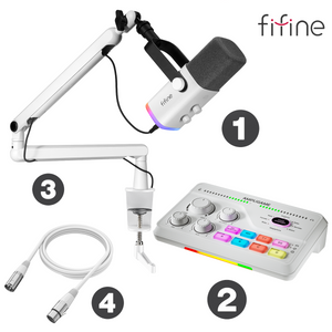 FIFINE Ultimate White Package (AM8 V2+SC8 Mixer+BM88 Stand+XLR Cable)