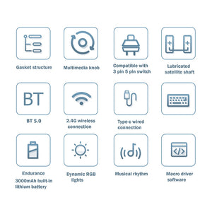 - [HOT-SWAPPABLE]: GMK67 wireless keyboard can be hot swapped at wish and replaced by all of MX-similar mechanical switches (including Gateron, Cherry, etc.), supporting 3-pin/5-pin switches. This wireless keyboard is available in blue/brown/red switch.