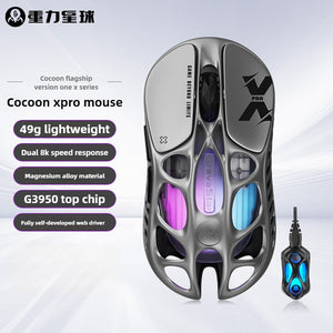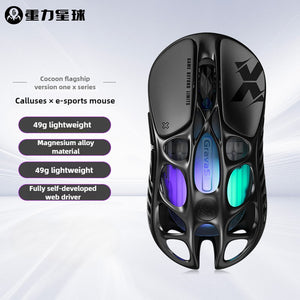 Experience the ultimate in gaming precision with our magnesium alloy mouse, 8KHz, weighing in at just 49g. Its innovative hollow skeleton design, crafted with 0.8mm thick magnesium alloy, ensures both durability and a superlight feel.