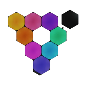 Transform your space with the sophisticated LIMITED EDITION Nanoleaf Shapes Ultra Black Hexagons. This set includes everything you need to create stunning lighting designs with a sleek black finish that complements any modern decor. Enjoy vibrant RGB lighting animations or a sleek look when turned off. This kit is packed with smart features and designed for easy installation with included adhesive mounting tape—no additional tools required.