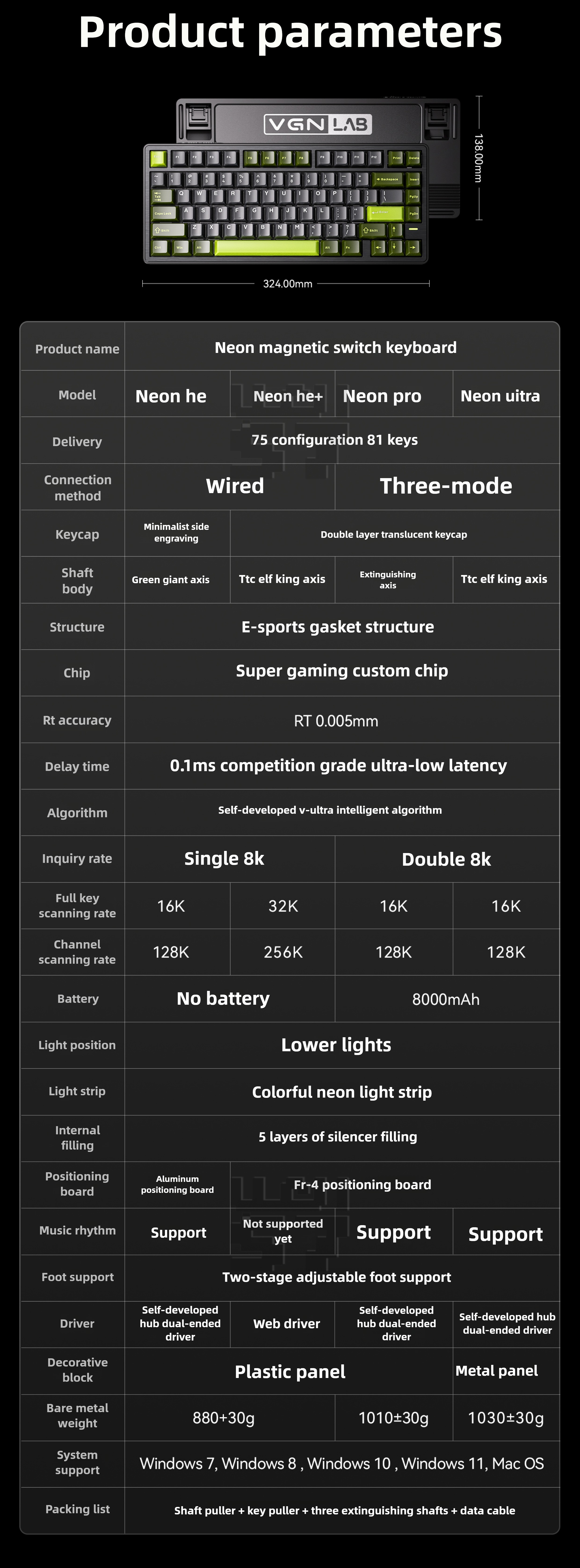 VGN Neon75 8Khz Wireless Magnetic E-sports Keyboard