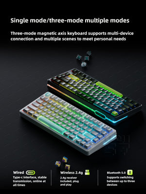 Tri-mode magnetic switch keyboard supports multi-device connectivity, adapting to diverse scenarios for hassle-free switching—tailored to your every need